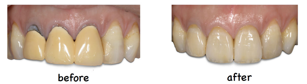 こんにちは! なかむら歯科、院長の中村弘幸です! 当院での審美歯科治療の1例をご提示させていただきます! こちらの患者様は、以前に装着された前歯の被せ物が変色し、歯ぐき下りによる歯根の露出による審美障